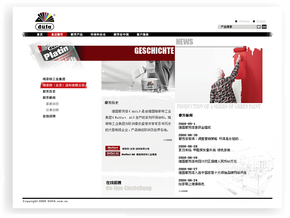 中文官网秉承都芳漆的品质和理念,力求做到简洁、明快。整体设计风格与集团网站相呼应,同时尊重中国大众审