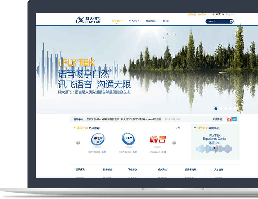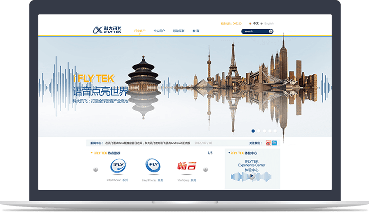 科大讯飞整体页面简洁、信息高效,互动性效果强!